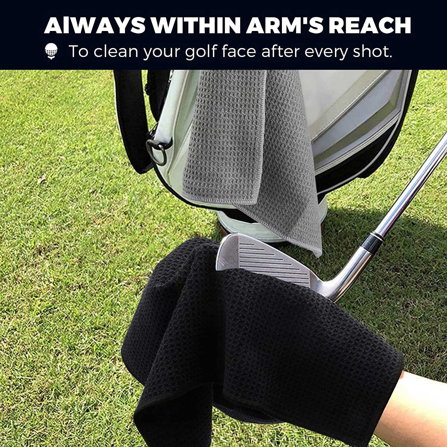Easy To Clean Up: microfiber waffle pattern golf towel is soft, absorbent and durable, easy to remove dirt, mud, sand and grass, keep the golf club, golf ball and your hand dry while playing golf
