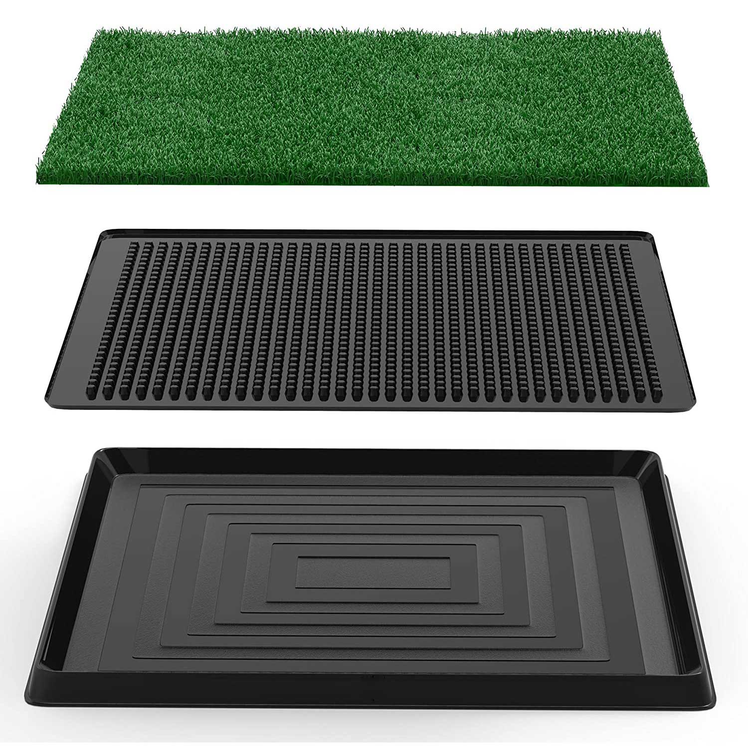 DOG GRASS PAD WITH TRAY – This artificial turf dog mat provides a sanitary place for your pet to relieve themselves inside or on your balcony or patio. It’s a reusable alternative to disposable dog pads for small to medium-sized pets.
