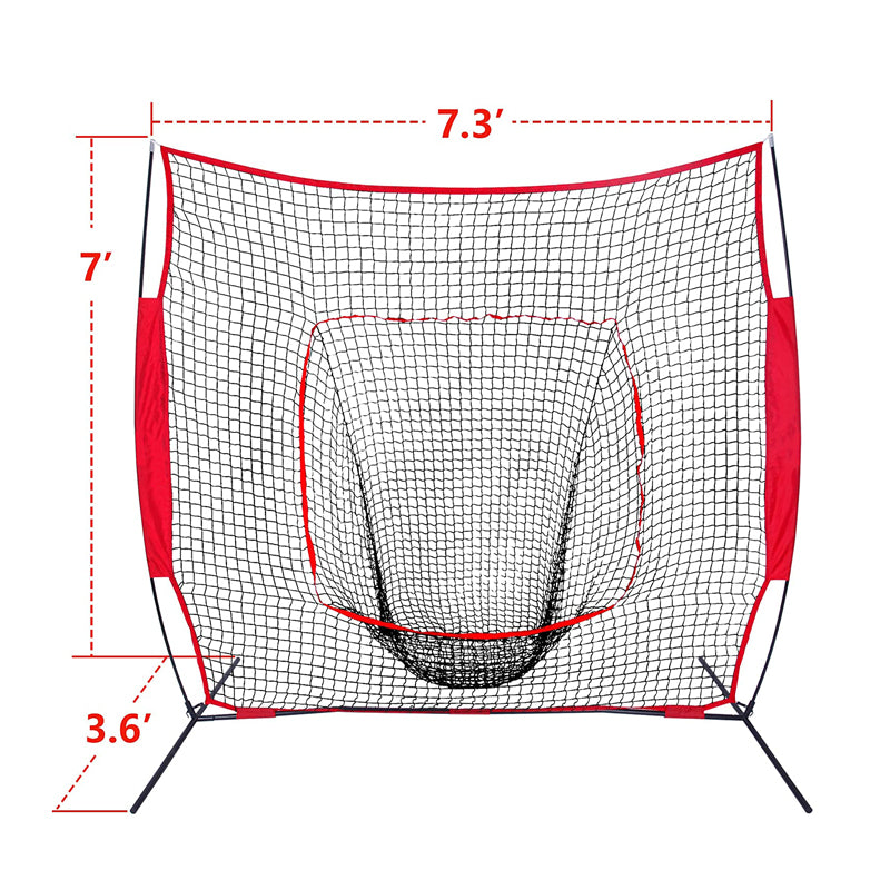 ▪ SOLID STRUDY CONSTRUCTION - This 7'×7' baseball net is made of powder coated steel frame with robust thicker and tear resistant polyester net increase greater stability when batting and pitching into the net, which can withstand years, each leg has rubber feet for added stability..