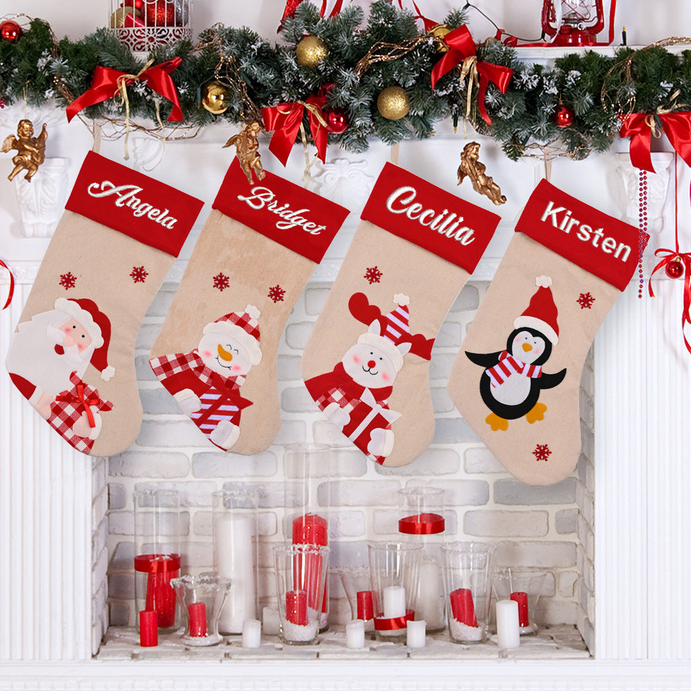 The stockings come to me premade. I cannot change the background colors. I only add the names to the stockings