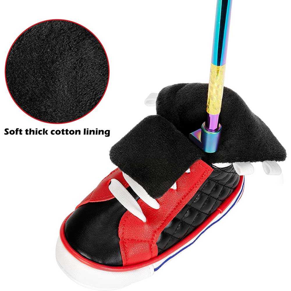 Creative Design: Funny shoe body appearance, shiny yellow and red, matched with classic black, more eye-catching. With 2 stitches of different colors, make putter cover is more plump and beautiful. Add unique funny and characteristics to your golf bag.