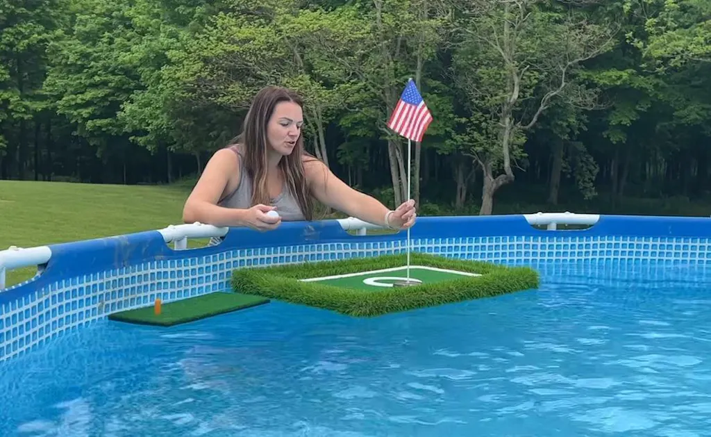 The floating golf putting green can make you to enjoy water golf easily. Family and friendsget together not only to have a different kind of backyard fun, also help you improving your golf skills. It is an interesting water golf sports.  Golf Floating Green Games & Tips