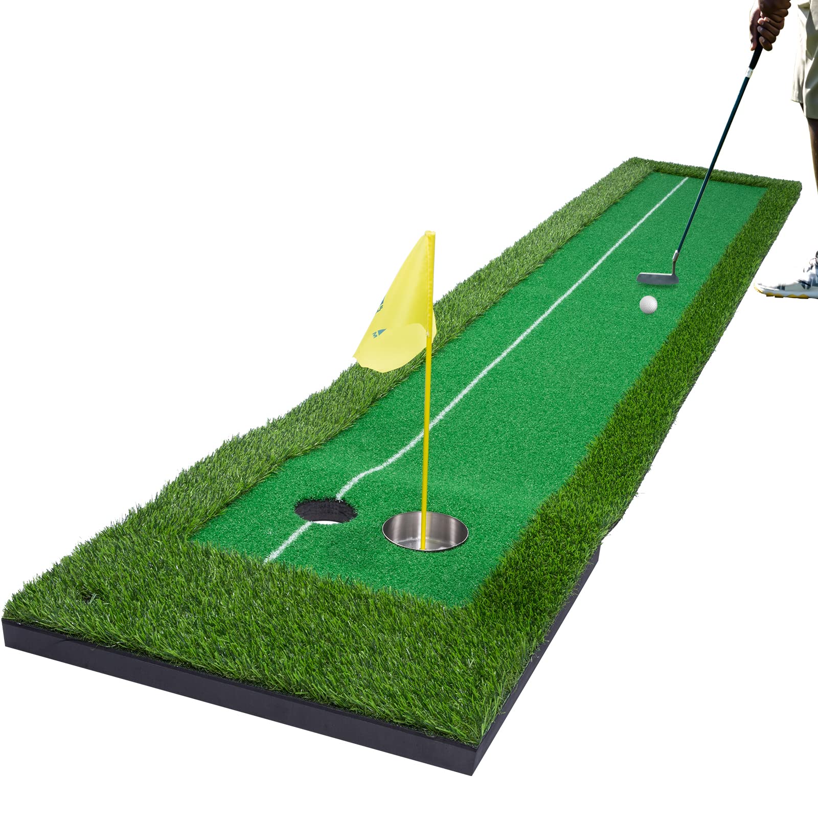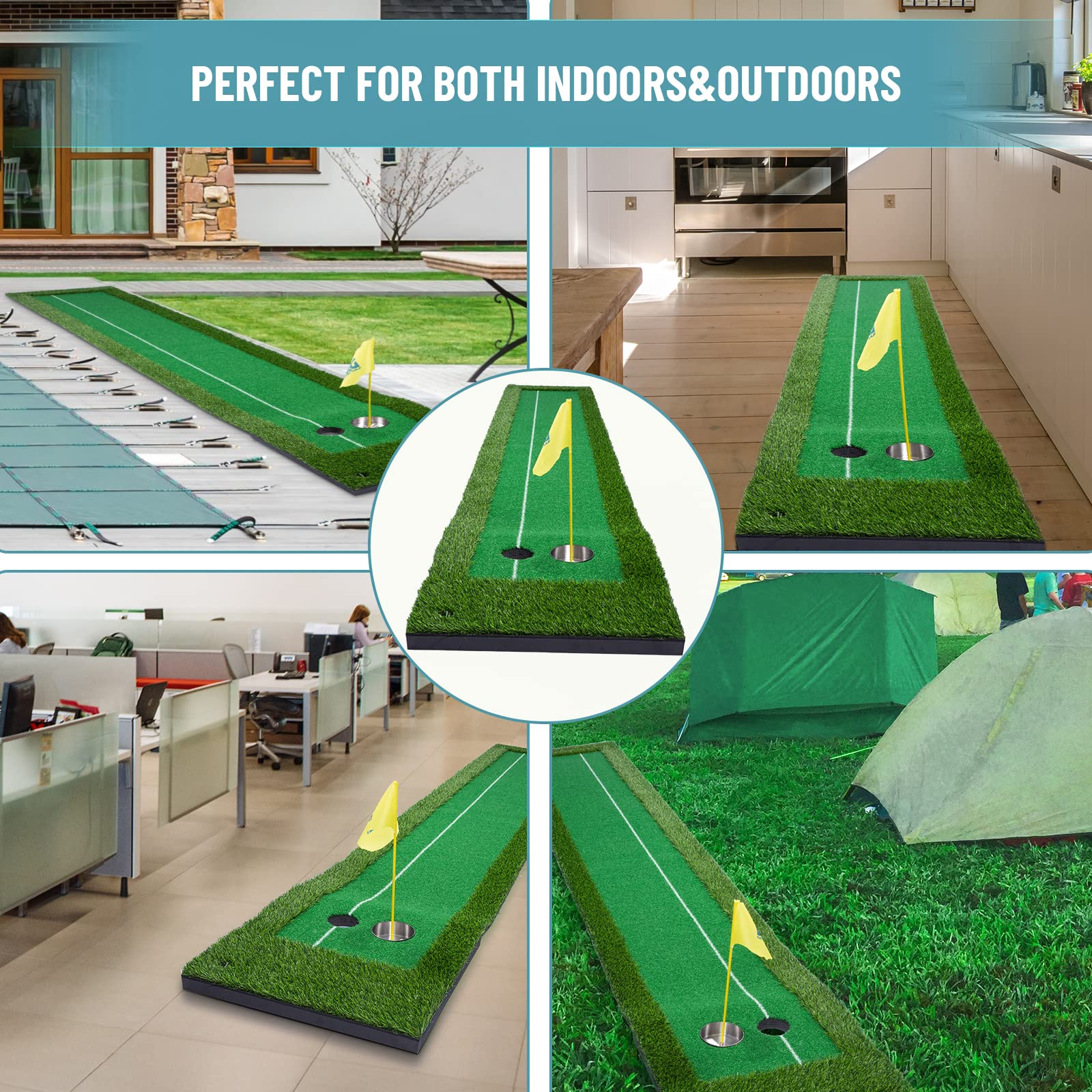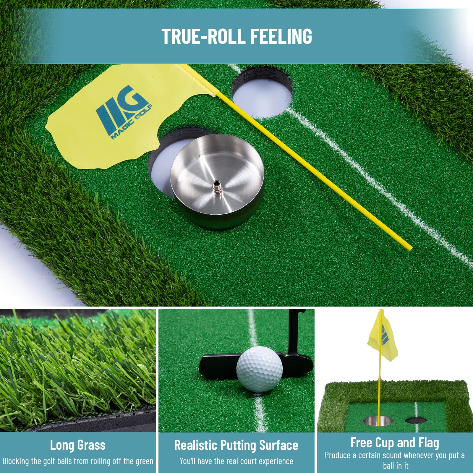 ▪ REALISTIC GOLF MAT — Featuring synthetic turf that simulates real grass and an elevated golf hole area, our indoor golf putting mat gives you the feel of playing on a real life-like golf course!