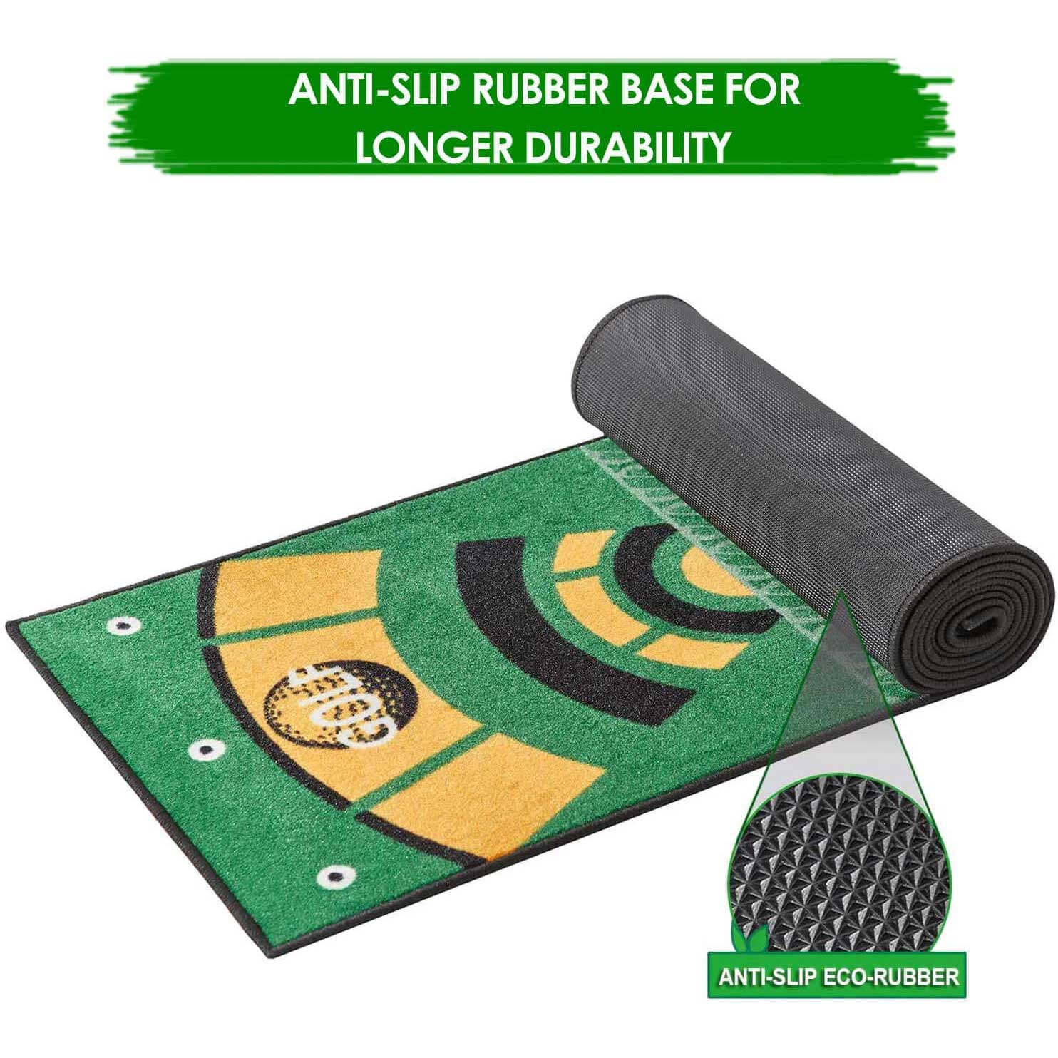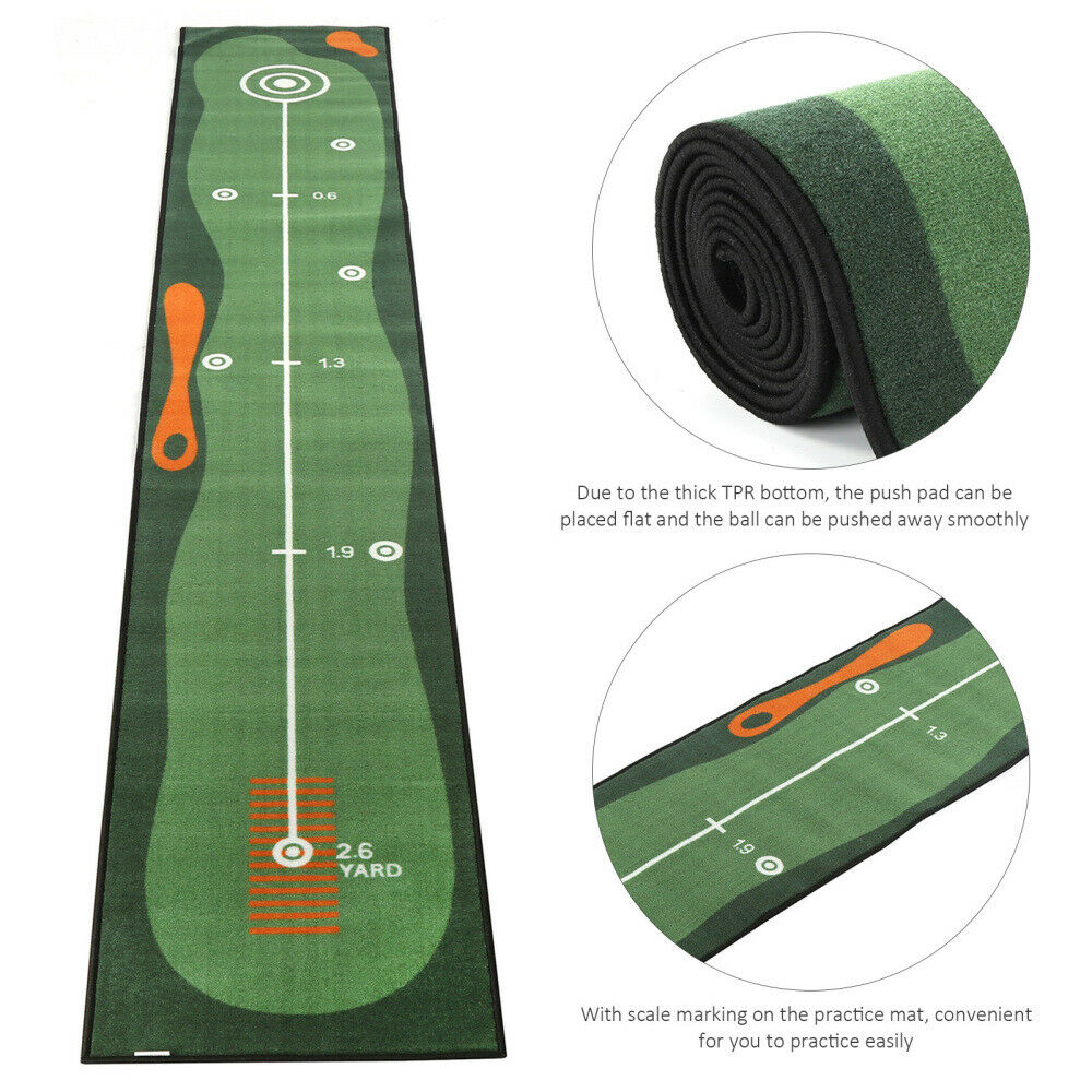 ▪ Large Putting Area: The size of the golf mat is 9.84ft, the practice part is up to 7.87ft, and it is equipped with a size scale. Two different colored mat lines with different speeds, you can practice your putter's strength and accuracy according to the size scale.