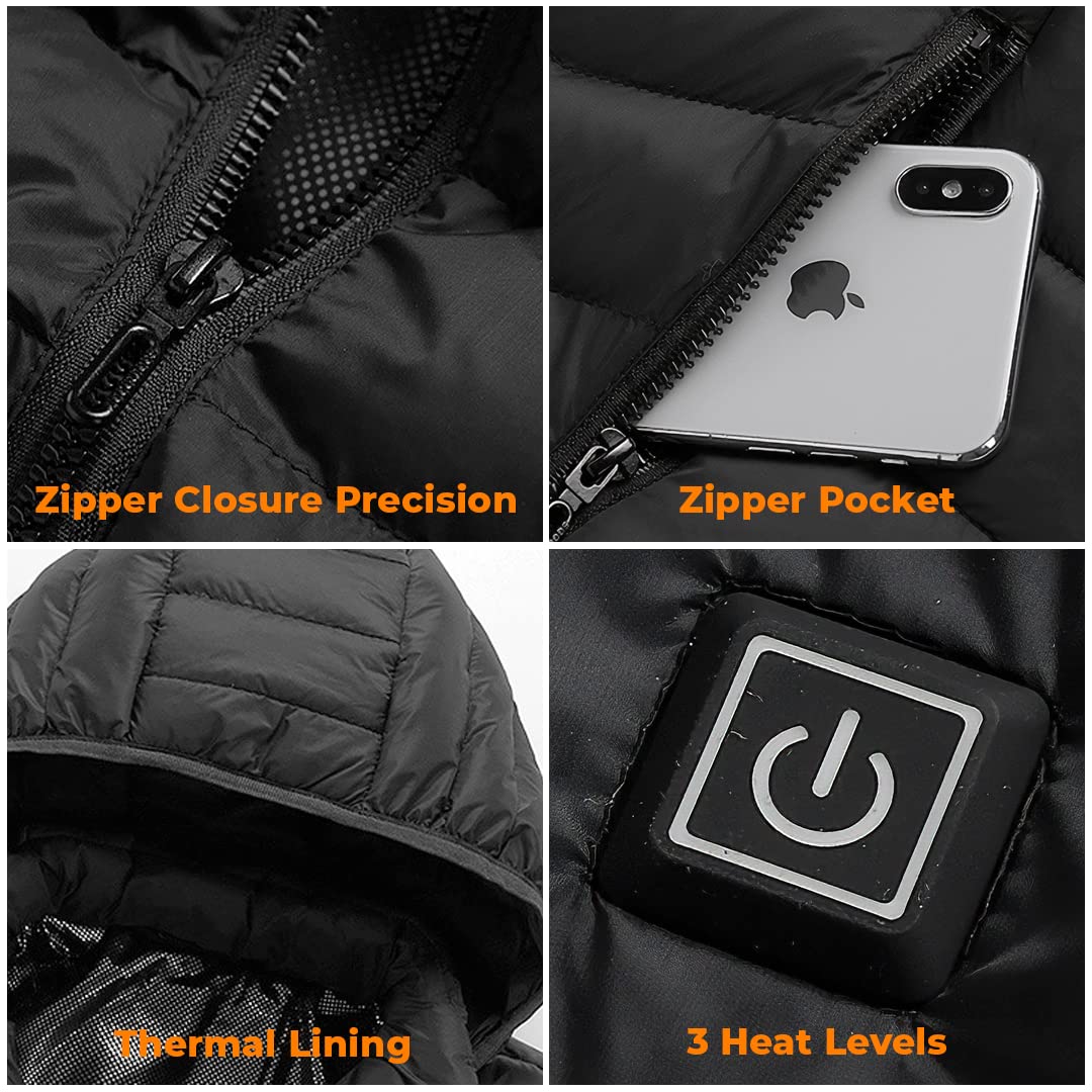 EASY CARE - Please take out the power bank before hand washing. Air-drying is suggested to protect heating elements. Confirm the jacket and USB interface are completely dry before use.