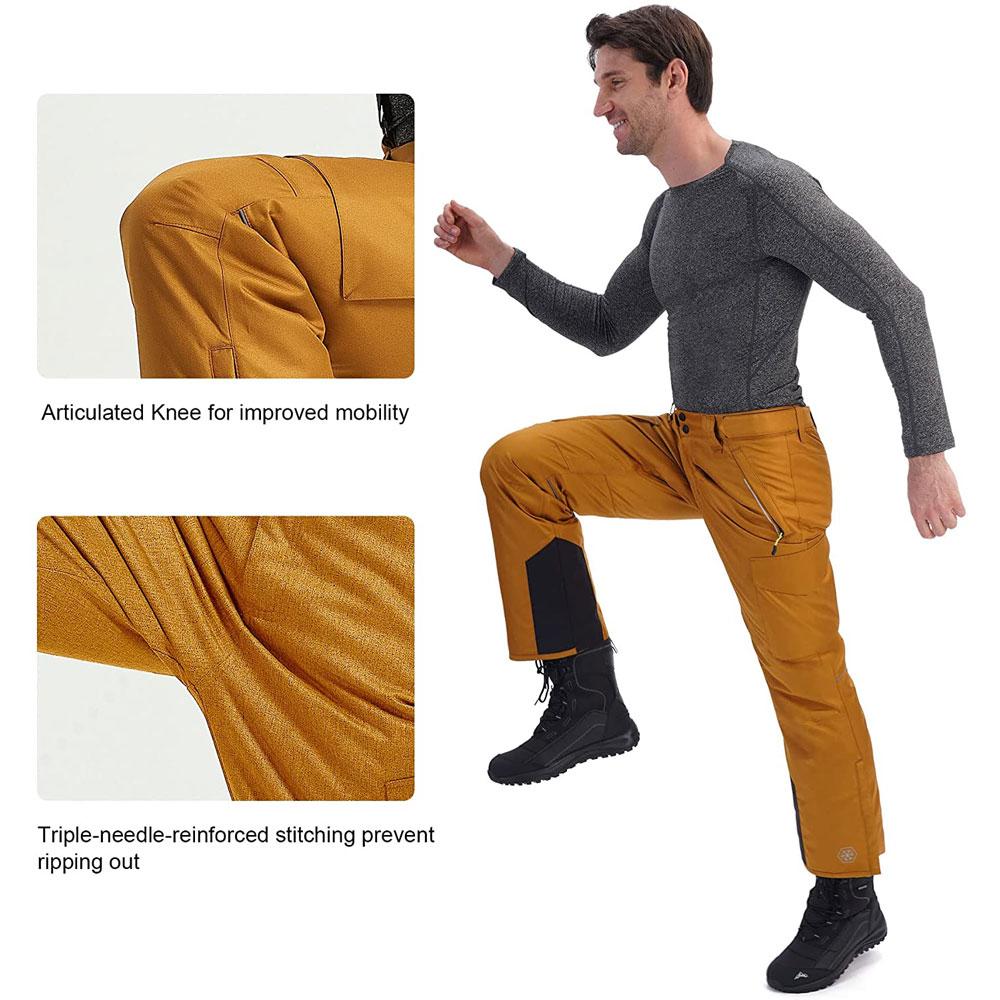 Stay Agile: The ski pants are made of durable jacquard material which offers a comfortable, soft-touch feeling which enhances higher mobility and flexibility for your better performance. These warm men's pants are fitted with articulated knees Move the way you need to.