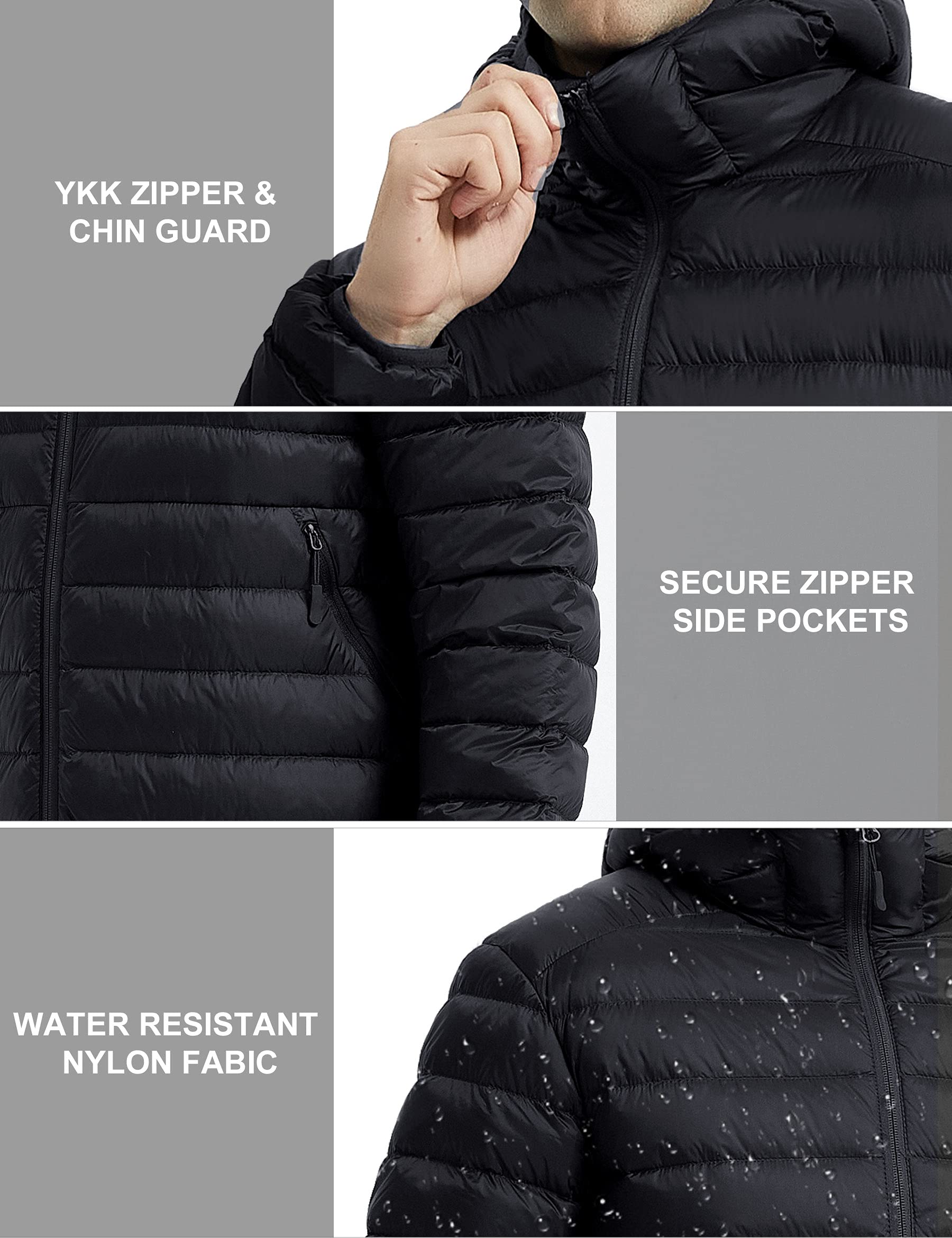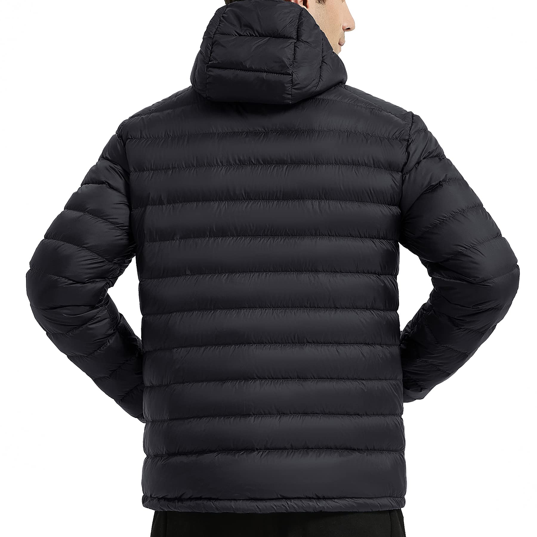 Warm Hooded for Down Jacket: Hooded men's puffer jacket keeps warm out on winter days, high collar with a front zipper for added warmth and to prevent the wind.