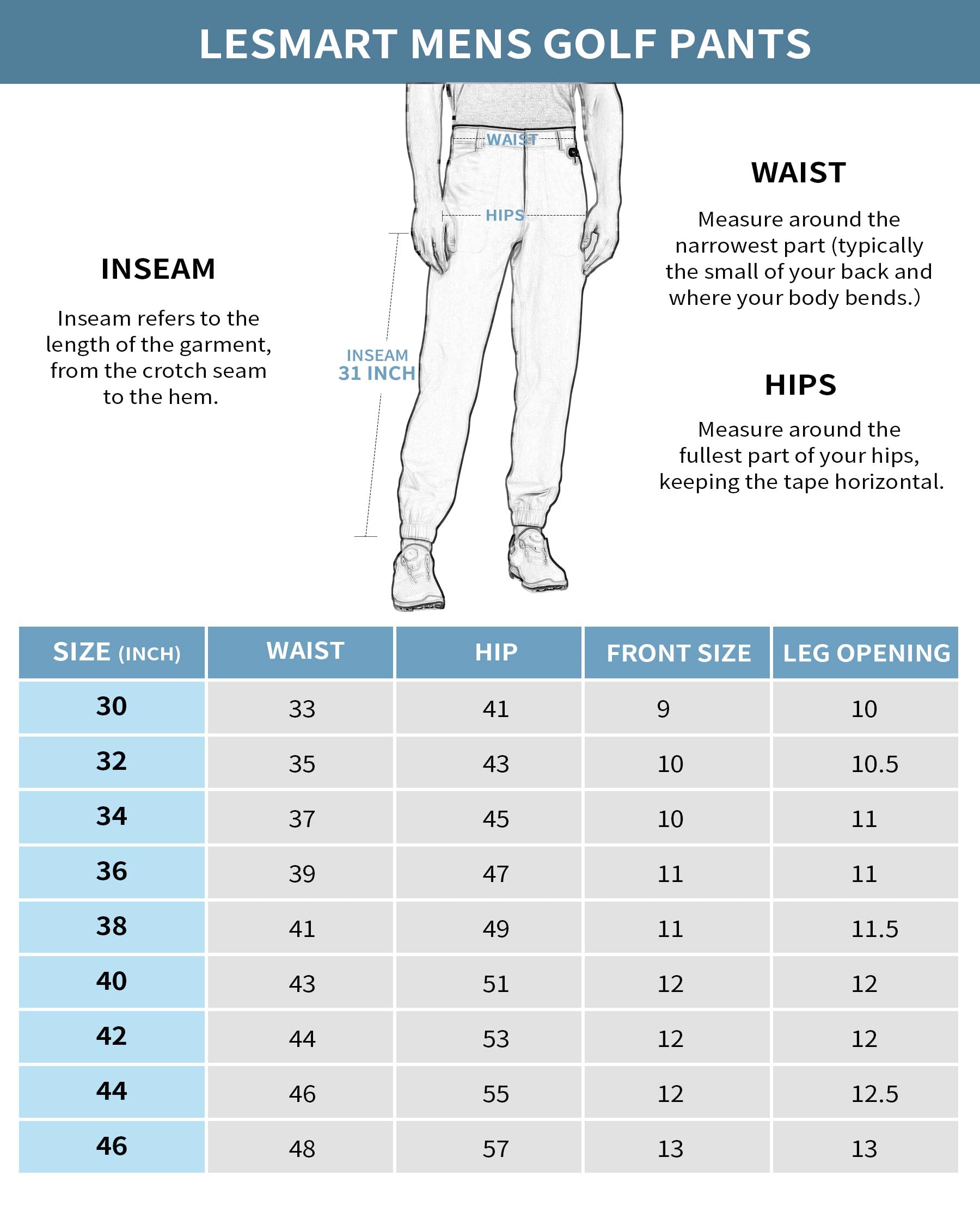 4-way stretch: These men's golf pants are designed with an elastic waistband and belt loops to improve product fit and elastic ankle cuffs for an adjustable fit. The elastic waistband with anti-slip tape adds stretch and anti-slip effect.