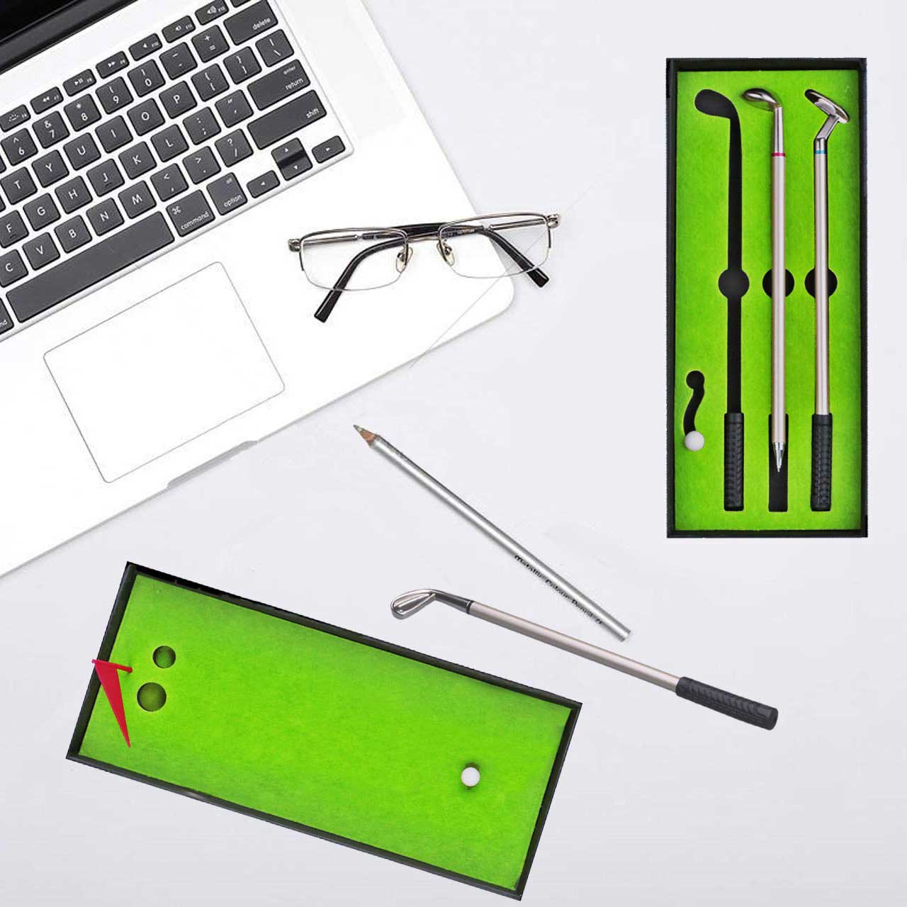 UNIQUE & NOVELTY GOLF GIFTS: Our miniature golf club shaped ballpoint pens set are made of high-quality alloy, 3 gel pens with 3 different colors, black blue and red, it can meet different writing requirements. Premium material, creative design and personalised packaging, small size portable pocket board game, travel must haves. It's a best rewards prizes for tournaments, golf outing giveaways.