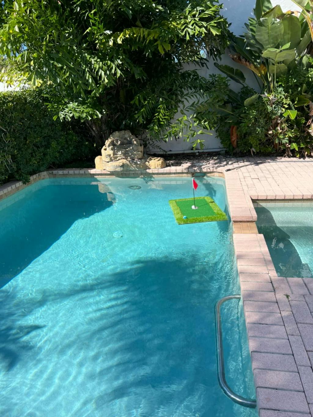 ▪ Easy to float, non-slip, odorless, and resistant to wear and tear. Pool golf chipping green made of eco-friendly EVA nylon turf brings the real feeling of chipping and practicing