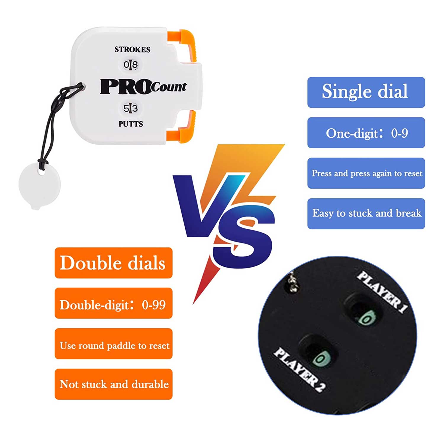 【2-in-1 Design】Two digit counter: Double dial design, can count the shots or putts of 2 players at the same time. It is convenient for scoring in games and competitions.