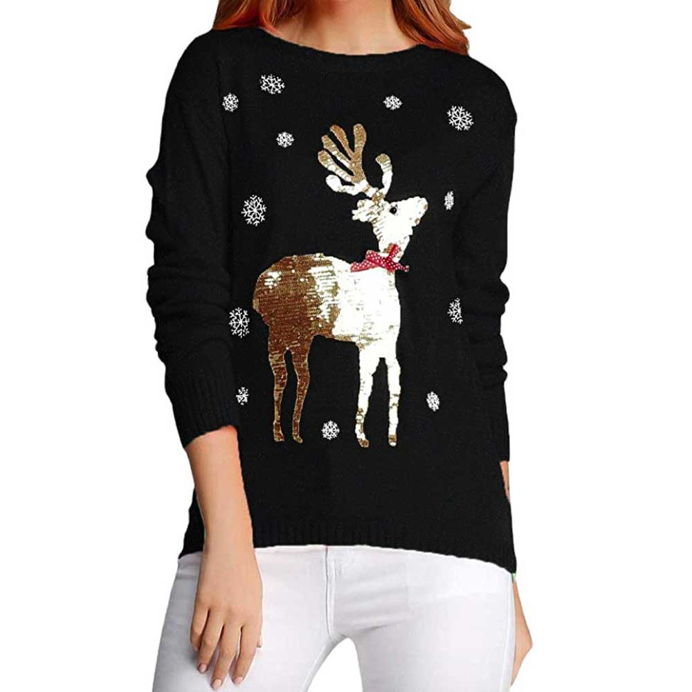 Ugly Christmas sweater for women decorated with a happy Santa deer snowman made of soft acrylic