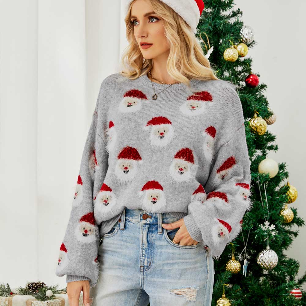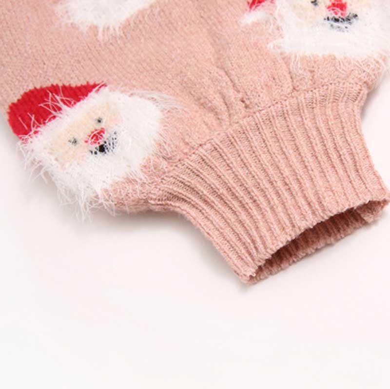 This Christmas sweater is too cute!! I ordered the black one because I thought the santas would show up better than the gray and I'm not much a pink color person and they did. I ordered a large since I have long arms and it fit great there. The only thing I was surprised on is that this sweater is short, it comes up to the top of my jeans. It's very soft. It's mostly polyester so I will probably wear a shirt underneath it. To call it an ugly Christmas sweater is wrong, it's cute and I can't wait to wear it this season.