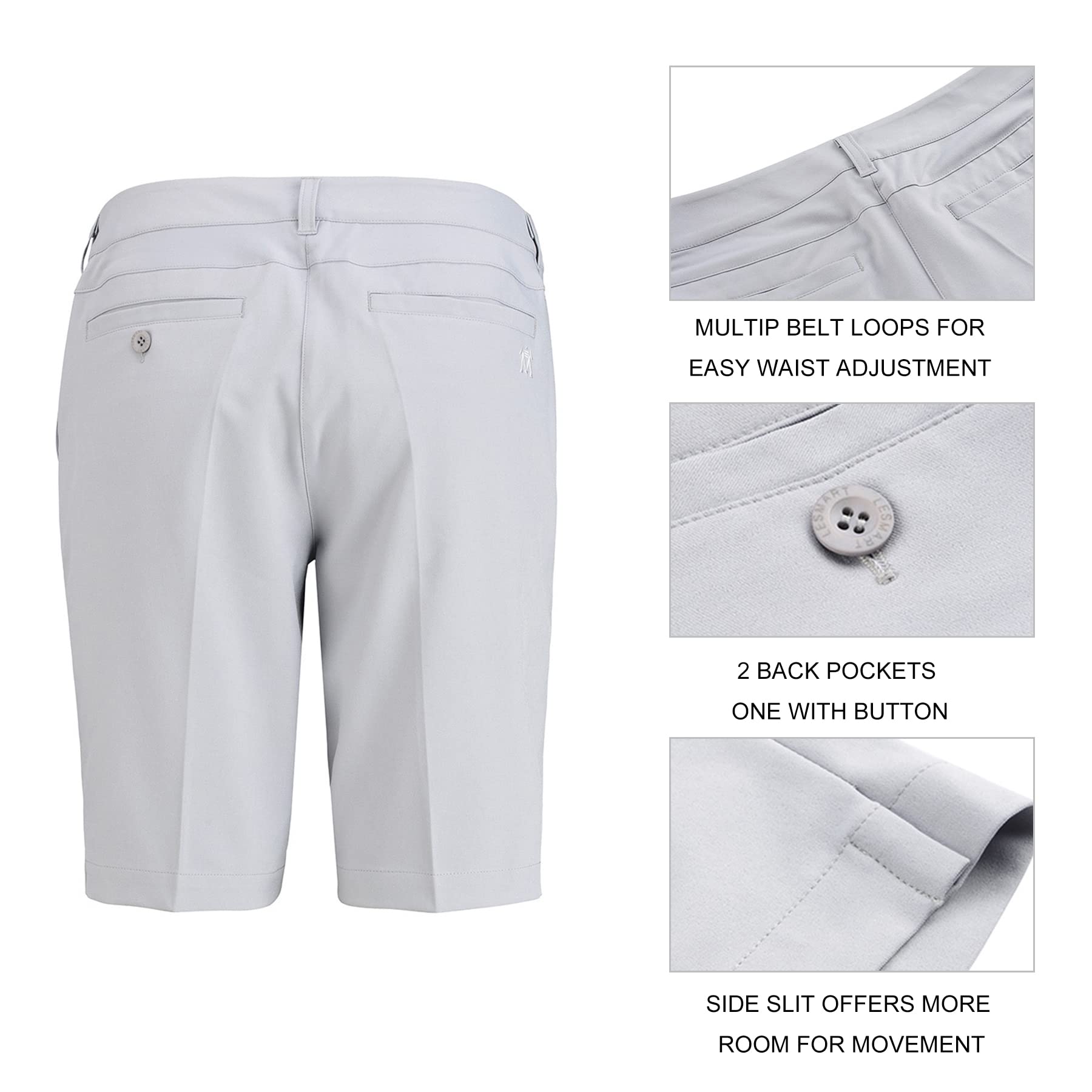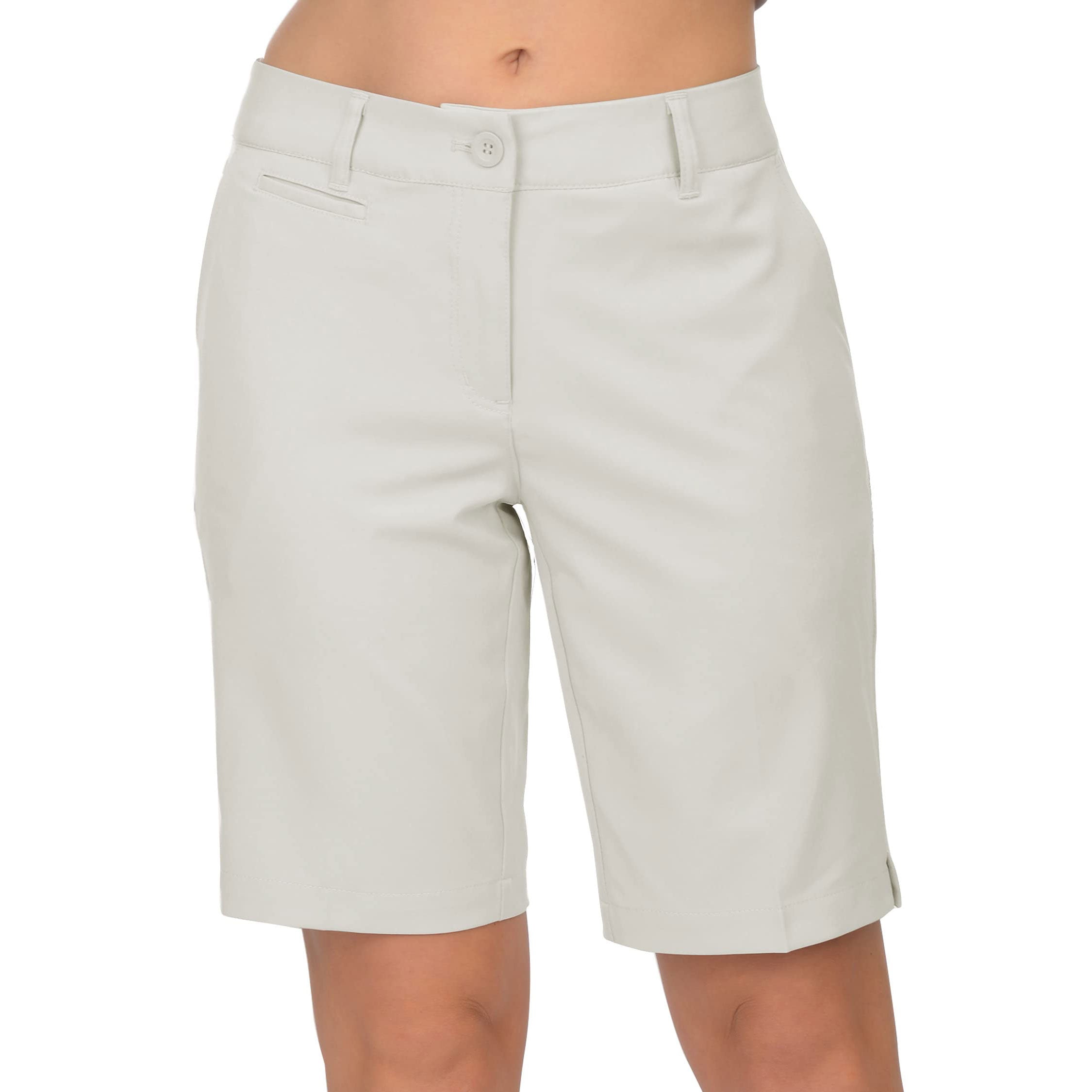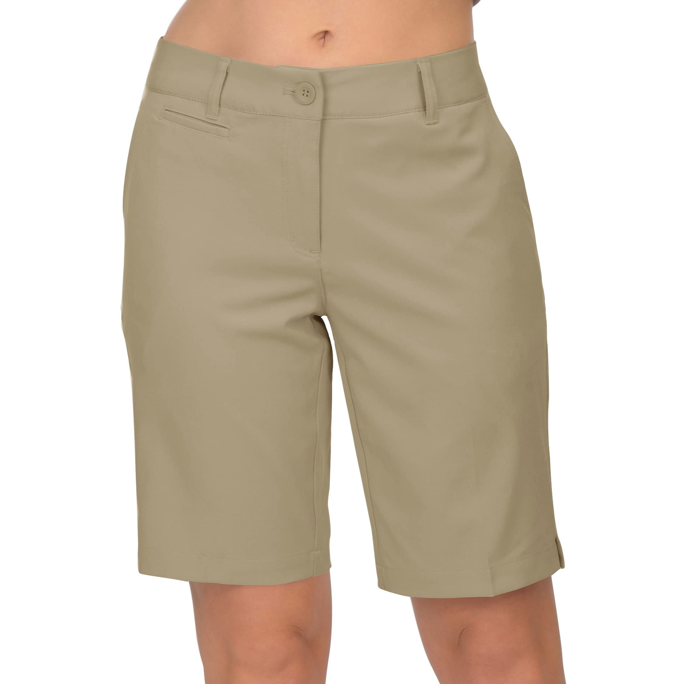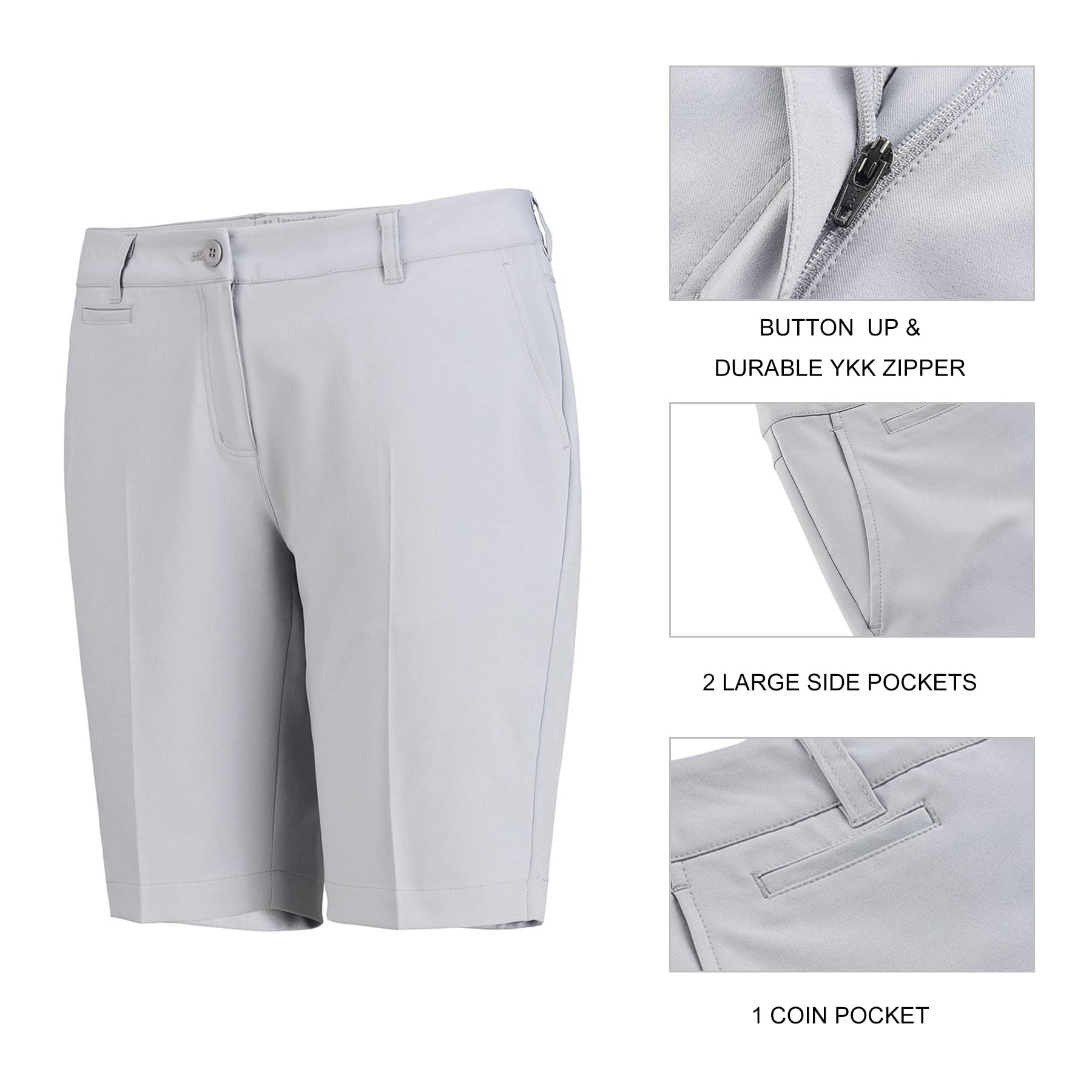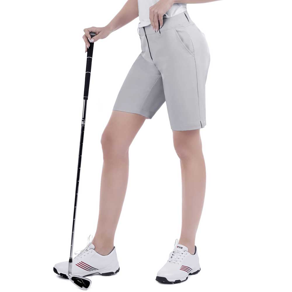These women's golf shorts feature lightweight, breathable, quick dry and water resistant. 4-way stretch comfort fabric offers UPF 50+ for excellent UV protection.