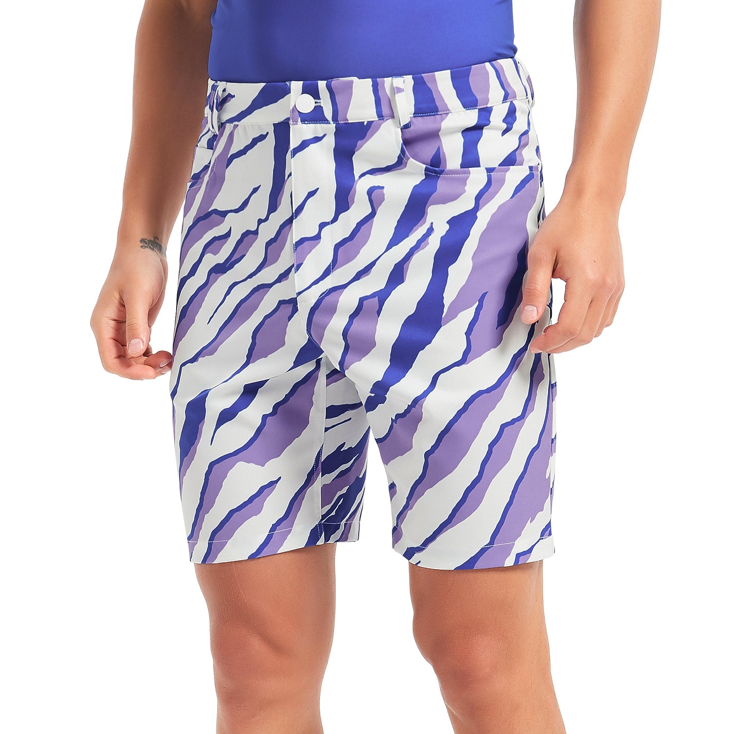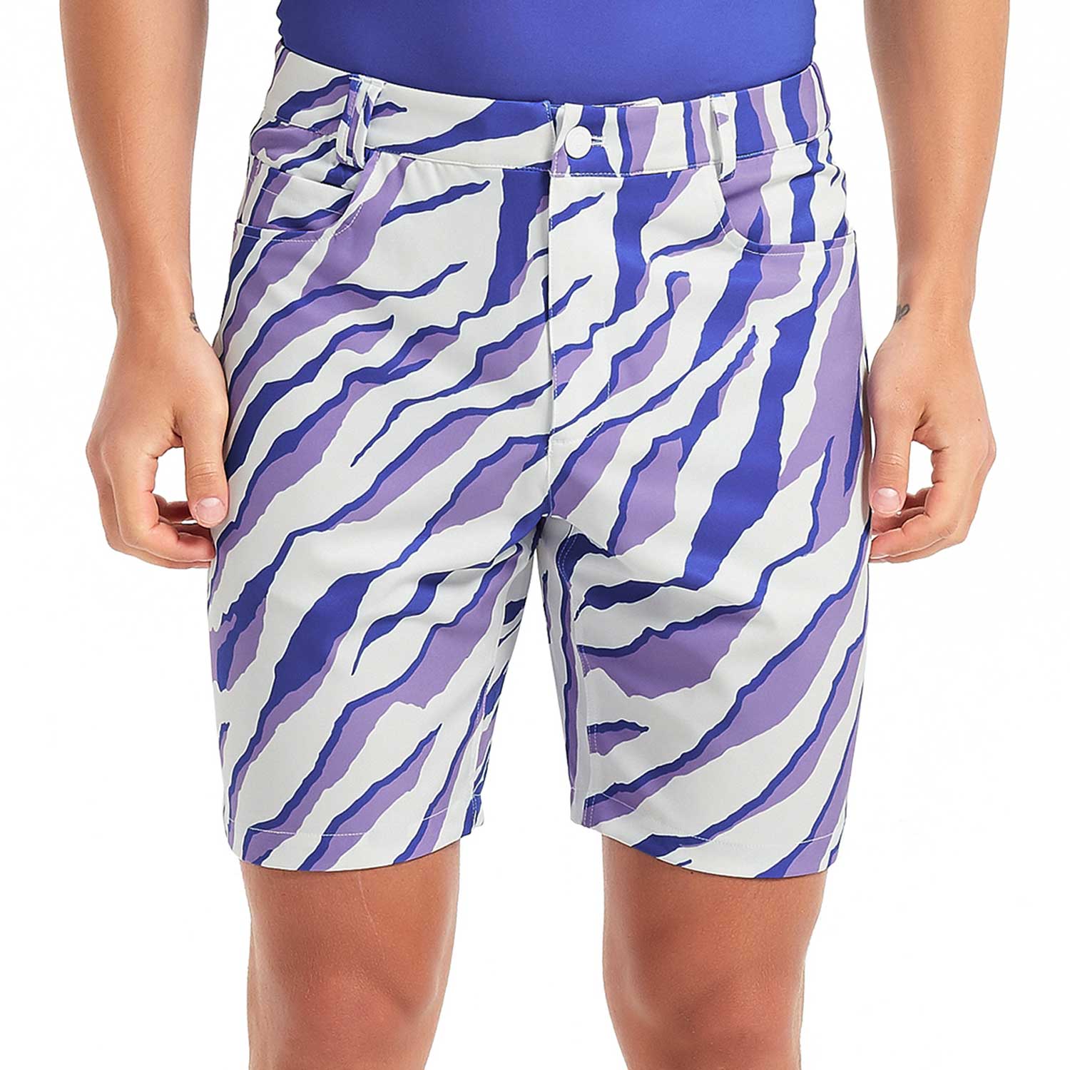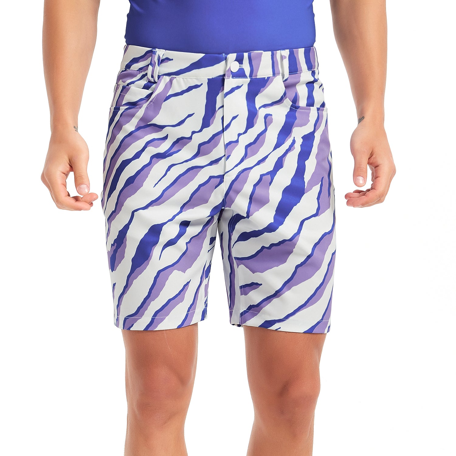 Lesmart Zebra Print Soft Feel golf shorts are made from a soft feel, stretchy fabric that is perfect for all day wear. From the course to the party, these Zebra Print Soft Feel Golf shorts will keep you cool and looking good.