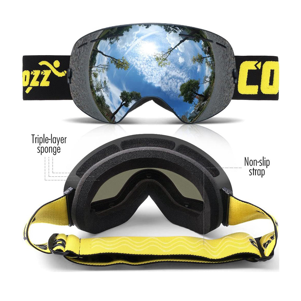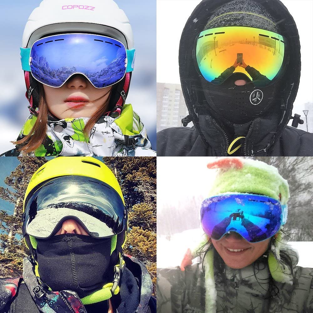 ❤ Performance Double-Layer Lens - Cool full real Revo mirror coating reflective lens imported from Italy with long-lasting anti-fogging treatment and100% UV protection that can protect your eyes from strong lights; Large spherical lens with frameless design provides a truly unobstructed & clear view on the slope when skiing and snowboarding