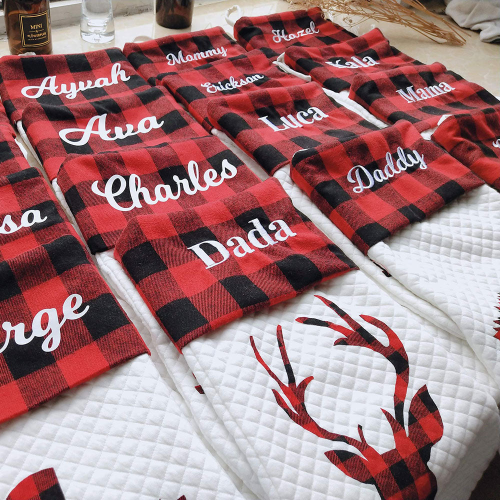 The stockings come to me premade. I cannot change the background colors. I only add the names to the stockings