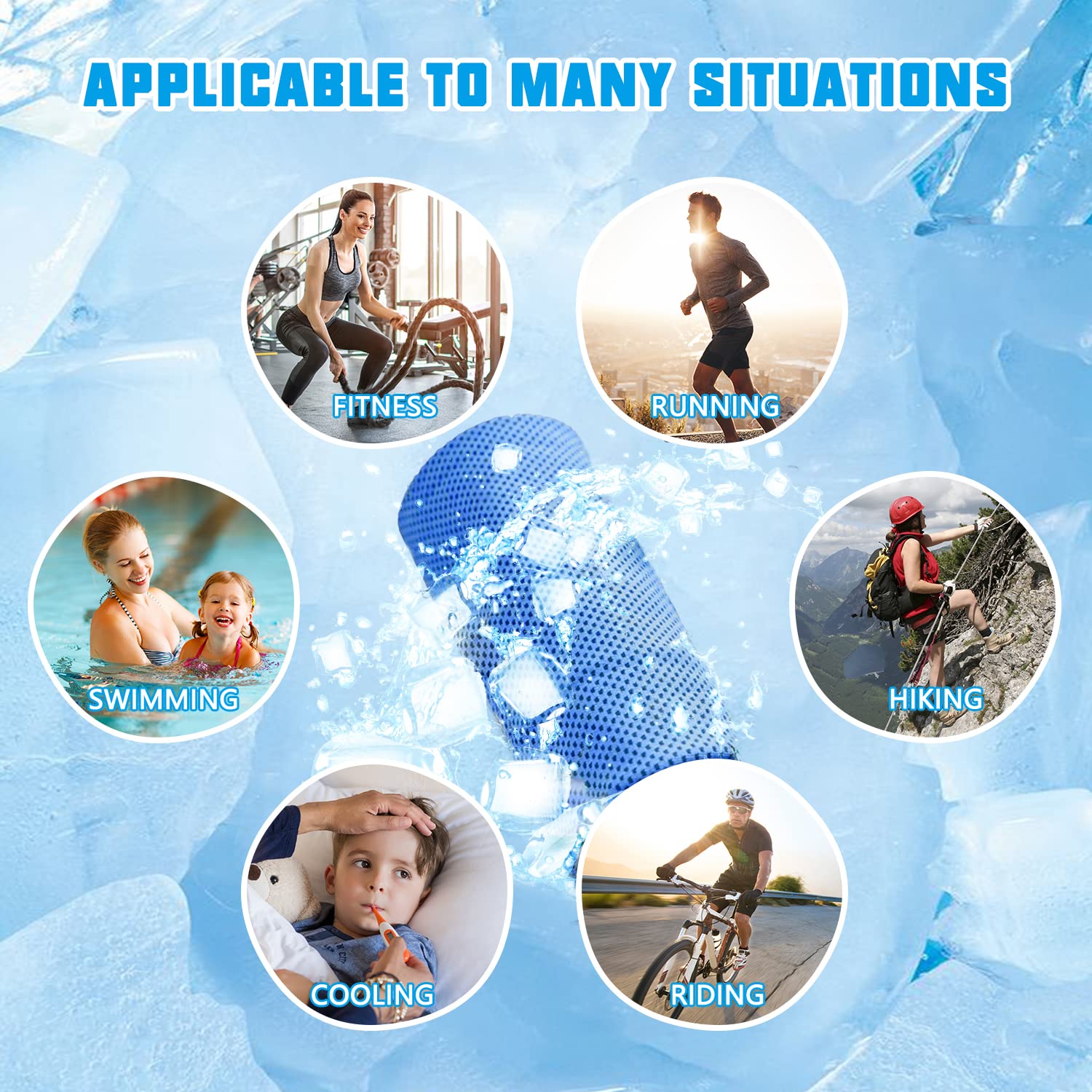 The Cooling Towels are made of hyper-evaporate breathable mesh cold and quick drying material. The unique cooling system uses moisture from the towel to take sweat off your skin and keep you cool.